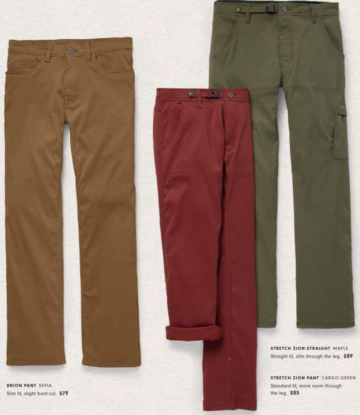 There are now four models of Zion: Stretch Zion Pant II (base model), Stretch Zion Straight Pant II, Stretch Zion Slim Pant II, and Stretch Zion Convertible Pant (zip-off bottoms). The Brion comes in two flavors: the Brion Slim Pant II and the Brion Pant II.